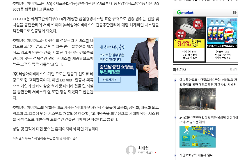 (주)혜성아이비에스 "원스톱 건물-시설 관리 업체, 신중한 선택 필요해"
